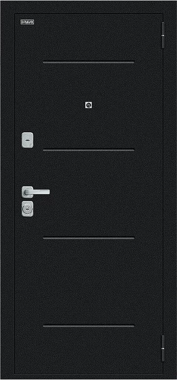 Надежная входная Дверь Браво Техно/BChrome Букле черное/Wenge Melinga премиум класса по цене 36 967 руб. Большая толщина стали защитит от проникновения в ваш дом, квартиру или коттедж. Используется очень качественная фурнитура: замки, цилиндры, ручки, защелки. Покрытие и отделка двери изготовлено под внимательным контролем производителя. Дверь имеет долгий срок службы и гарантию.